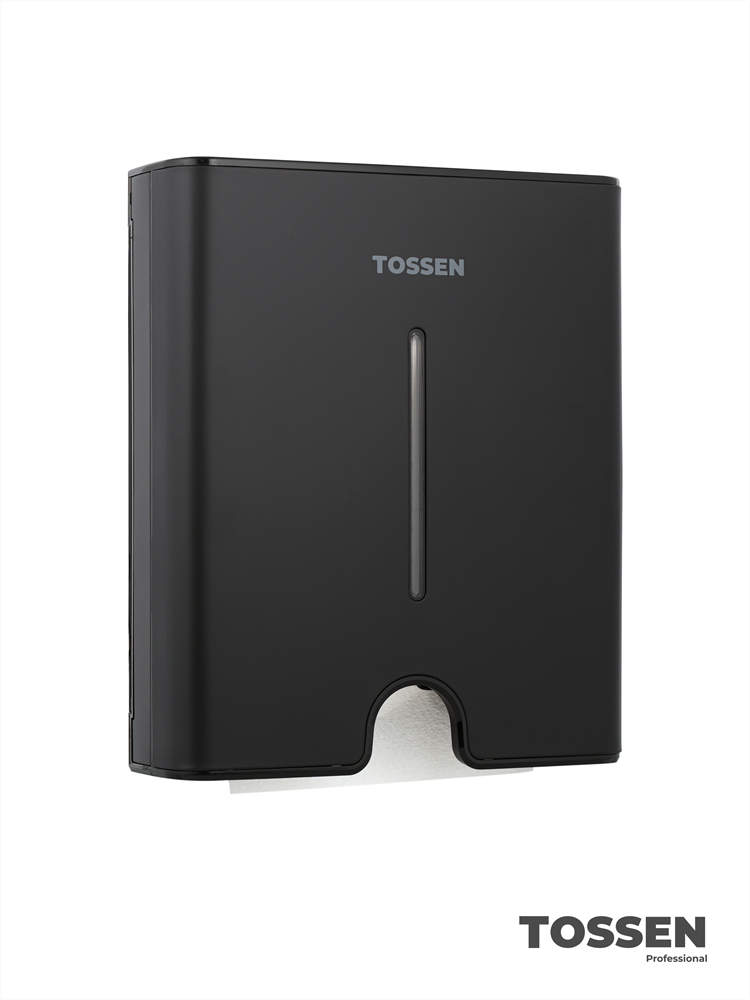 TOSSEN Z-500 MB - стильный универсальный диспенсер бумажных полотенец Z сложения. Диспенсер оснащен замком, предотвращающим несанкционированный доступ к полотенцам. Смотровое окошко позволяет легко осуществлять контроль наличия полотенец. Модель Z-500 MB выполнена из материалов премиального качества. Сочетание нержавеющей стали, окрашенной в матовый черный цвет и ударопрочного пластика, делают диспенсер действительно стильным, благодаря чему, он будет гармонично смотреться в самом изысканном помещении.