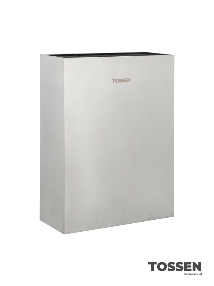 TOSSEN MV 2400 M - прямоугольное мусорное ведро ёмкостью 25л, выполненное из нержавеющей стали. Может размещаться на стене или устанавливаться на пол.